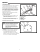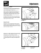 Adjustments Lift Rod Adjustment B The lift lever can be placed in one of three notches and is held in position by the lever latch. (see Figure 7). When the lever latch is placed in notch 1 the lift lever should be applying downward pressure on the attachment. In position 2, the “float” position, the attachment should experience negligible upward or downward pressure. Position 3 should raise the attachment approximately 6“ above the ground.