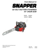 Parts Manual for N o R tf ep o r ro du ct io n 82 VOLT BATTERY POWERED 18" CHAIN SAW IT IS THE POLICY OF BRIGGS & STRATTON CORP TO IMPROVE ITS PRODUCTS WHENEVER IT IS POSSIBLE AND PRACTICAL TO DO SO. WE RESERVE THE RIGHT TO MAKE CHANGES OR ADD IMPROVEMENTS AT ANY TIME WITHOUT INCURRING ANY OBLIGATION TO MAKE SUCH CHANGES ON PRODUCTS Briggs & Stratton Yard Power Products Group 3515 N. 124 Street / PO Box 702 Wauwatosa, WI 53222 U.S.A. 800-935-2967 www.snapper.