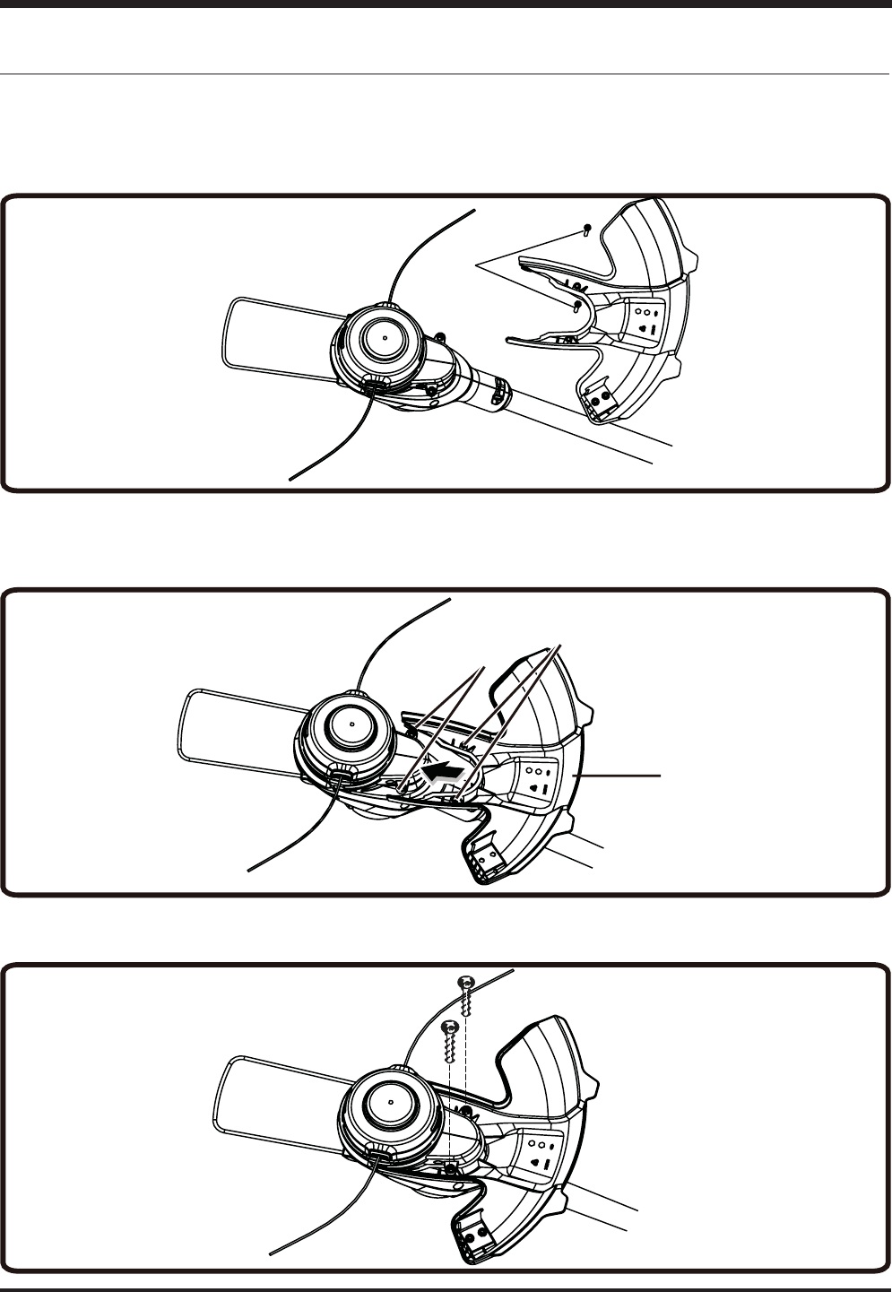 5. Insert the screws into the trimmer head, fastening the guard in place