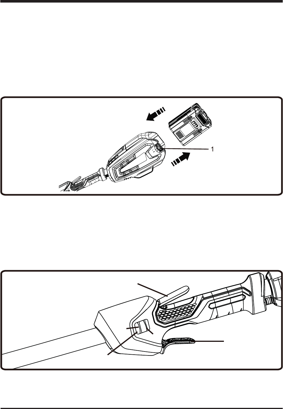 • Align raised ribs on battery pack with grooves in the trimmer’s battery port.