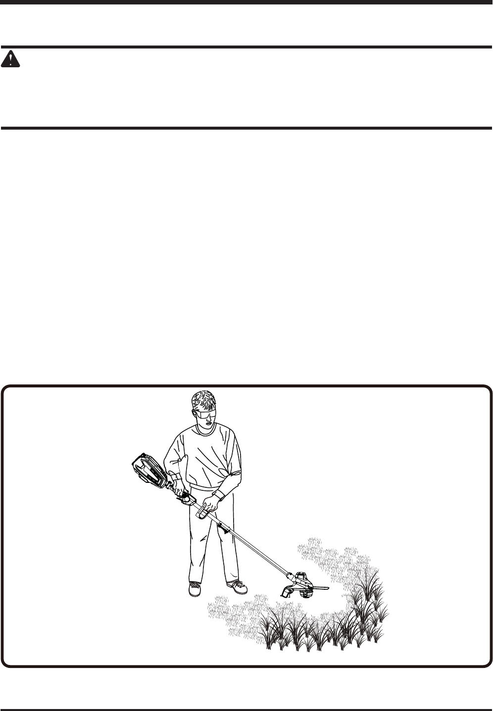 the body and the string trimmer. Any contact with the string trimmer cutting