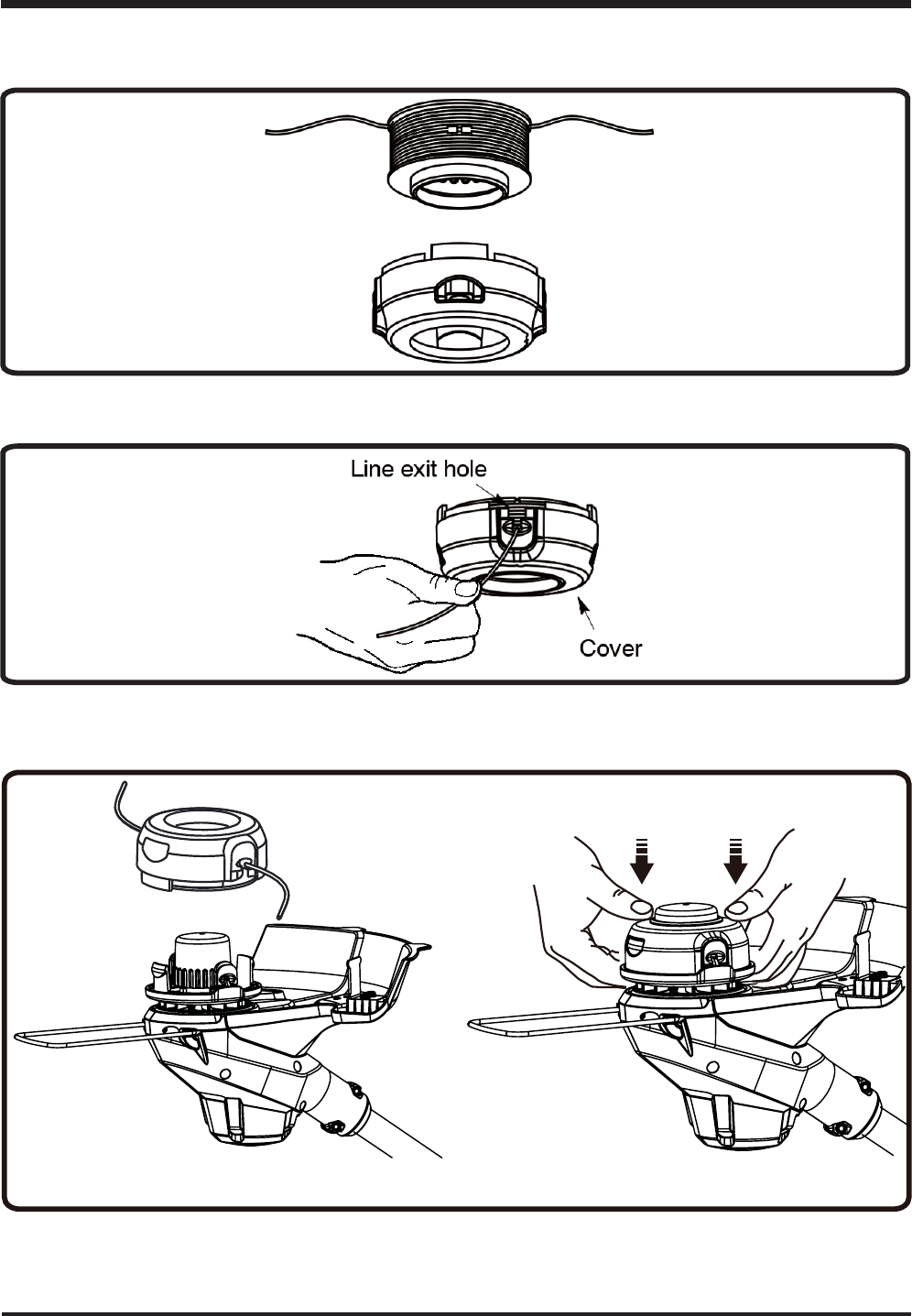 12. Reinstall the spool and cover onto the trimmer head. Push until cover