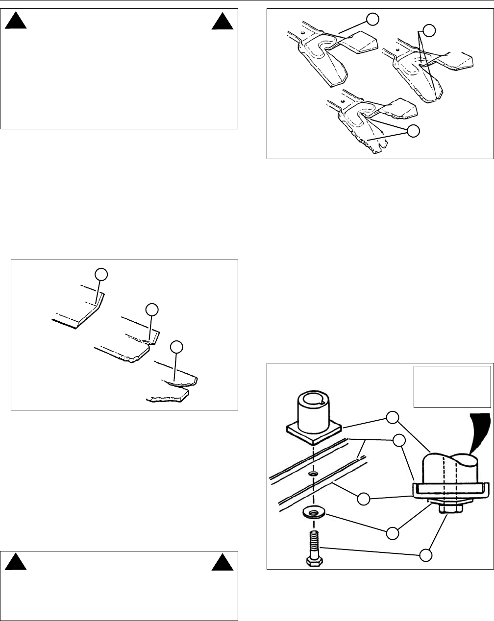 with engine and blade running. STOP engine and blade.