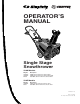 OPERATOR’S MANUAL Single Stage Snowthrower 520M Models Mfg. No. 1693643 1693645 85630 Description 520M, 5HP Snowthrower, Manual Start 520M, 5HP Snowthrower, Manual Start (CE) SS5200R, 5HP Snowthrower, Manual Start 520E Models Mfg. No.