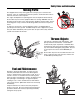 Operation AFTER EACH USE WARNING Normal use of the snowthrower may result in a build-up of packed snow in and around the starter cord housing and around engine controls. Heat from the engine will usually prevent the snow from freezing solid while the unit is running, but after the engine is shut down, some snow may continue melting from engine heat, and later freeze around some moving parts as the unit cools.