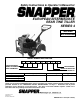 Safety Instructions & Operator’s Manual for EUROPEAN INTERMEDIATE REAR TINE TILLER SERIES 4 MODEL EICFR5004B MODEL NUMBER EXPLANATION E I C F R EUROPEAN MODEL MODEL DESIGNATION REAR TINE MODEL E – European Model I – Intermediate Size Model C – Counter Rotating Tines F – Forward Rotating Tines R – Rear Tine Type Model 50 4 B ENGINE MODEL SERIES DESIGNATION ENGINE HP 50 – 5 HP Engine (Horse Power) 4 - Series Designation B – Briggs Engine Thank you for buying a SNAPPER Product! Before operating