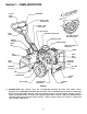 Section 1 - FAMILIARIZATION HANDLEBAR CLUTCH CABLE COVER WHEEL & TINE CONTROL BAIL WHEEL & TINE SHIFT LEVER SHIFT COVER DASH PANEL ENGINE SPEED CONTROL LEFT SIDE SHOWN TO VIEW CHECK PLUG ENGINE AIR FILTER HANDLE BRACKET CHOKE CONTROL DEPTH BAR MAIN CASE GREASE CHECK PLUG ENGINE TINE COVER DRIVE BELT GUARD DRAG SHIELD ENGINE OIL CHECK/FILL PLUG MAIN CASE FILL PLUG OIL DRAIN PLUG TINE STARTER ROPE TIRE & WHEEL WEIGHT BOX TRANSMISSION CHAIN CASE STAND-UP BAR FIGURE 1 1.