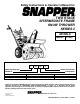 Safety Instructions & Operator’s Manual for TWO STAGE INTERMEDIATE FRAME SNOW THROWER SERIES 3 IMPORTANT Snapper products are built using engines that meet or exceed all applicable emissions requirements on the date manufactured. The labels on those engines contain very important emissions information and critical safety warnings. Read, Understand, and Follow all warnings and instructions in this manual, the engine manual, and on the machine, engine and attachments.