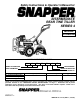 Safety Instructions & Operator’s Manual for INTERMEDIATE REAR TINE TILLER SERIES 4 MODEL ICFR5004B MODEL NUMBER EXPLANATION I C F R MODEL DESIGNATION REAR TINE MODEL I – Intermediate Size Model C – Counter Rotating Tines F – Forward Rotating Tines R – Rear Tine Type Model 50 4 B ENGINE MODEL SERIES DESIGNATION ENGINE HP 50 – 5 HP Engine (Horse Power) 4 - Series Designation B – Briggs Engine Thank you for buying a SNAPPER Product! Before operating your TILLER, read this manual carefully and pay