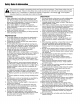 Safety Rules & information 21.Keepin mindtheoperatorisresponsible foraccidentsoccurringtootherpeopleor property. 22.Dataindicates thatoperators, age60yearsand above,areinvolvedina largepercentage of power equipment-related injuries.Theseoperatorsshould evaluatetheirabilityto operatetheunitsafelyenough to protectthemselves andothersfrominjury. 23.DONOTwearlongscarvesor looseclothingthat couldbecomeentangled in movingparts. 24.Snowcanhideobstacles.Makesureto removeall obstaclesfromtheareato becleared.