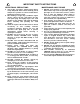 IMPORTANT SAFETY INSTRUCTIONS OPERATIONAL PRECAUTIONS MAINTENANCE AND STORAGE 8. Start engine only where exhaust fumes will be safely dissipated. Allow a brief warm-up period, and practice operation of controls outside before putting the machine to work. 9. After striking a foreign object, STOP the engine (motor), remove the key, and remove the wire from spark plug. Thoroughly inspect the snow thrower for any damage, and repair the damage before restarting and operating the snow thrower. 10.