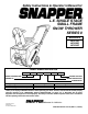 Safety Instructions & Operator’s Manual for L.E. SINGLE STAGE SMALL FRAME SNOW THROWER SERIES 0 IMPORTANT Snapper products are built using engines that meet or exceed all applicable emissions requirements on the date manufactured. The labels on those engines contain very important emissions information and critical safety warnings. Read, Understand, and Follow all warnings and instructions in this manual, the engine manual, and on the machine, engine and attachments.