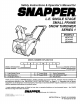 Safety Instructions & Operator's Manual for L.E. SINGLE STAGE SMALL FRAME SNOW THROWER SERIES 1 IMPORTANT Snapper products are built using engines that meet or exceed all applicable emissions requirements on the date manufactured. The labels on those engines contain very important emissions information and critical safety warnings. Read, Understand, and Follow all warnings and instructions in this manual, the engine manual, and on the machine, engine and attachments.