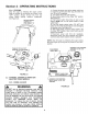 Section 4 - REPAIR & ADJUSTMENTS 4. Push the spring tensioned idler pulley down and install new belt. See Figure 4.5. WARNING DO NOT attempt any adjustments, maintenance, service,or repairswith engine running.Stop auger. Stop engine. Remove key. Remove spark plug wire and secure wire away from spark plug. BELT COVER RETAINING STUDS SHOWN REMOVED 4.1.2. AUGER BELT IDLER PULLEY ADJUSTMENT (Continued From Previous Page) 3. Loosen nut and bolt that secures the idler pulley to idler arm.