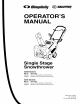5implicilq ® TM OPERATOR'S MANUAl Single Stage Snowthrower 520M Mfg. No. 1694585 7085663 520E Mfg. No. 1694586 7085664 Models Description 5201 M, 5HP Snowthrower, Manual Start SS5201 R, 5HP Snowthrower, Manual Start Models Description 5201 E, 5HP Snowthrower, Electric Start SS5201 E, 5HP Snowthrower, Electric Start Manual No 7100951 I.R.