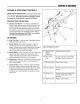 Troubleshooting & Service REPLACING THE DRIVE BELT 1. Remove engine key from switch. 2. Remove belt and engine covers. 3. Move the auger control on the handle and slip the belt out from between the brake lever and roller and away from the idler pulley. 4. Remove the belt from the engine and auger pulleys. 5. Install new belt around engine and auger pulleys and under idler pulley. The ribbed side of the belt must be to the inside, against auger and engine pulleys. 6.