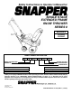 Safety Instructions & Operator’s Manual for SINGLE STAGE EXTENDED FRAME SNOW THROWER SERIES 0 IMPORTANT Snapper products are built using engines that meet or exceed all applicable emissions requirements on the date manufactured. The labels on those engines contain very important emissions information and critical safety warnings. Read, Understand, and Follow all warnings and instructions in this manual, the engine manual, and on the machine, engine and attachments.