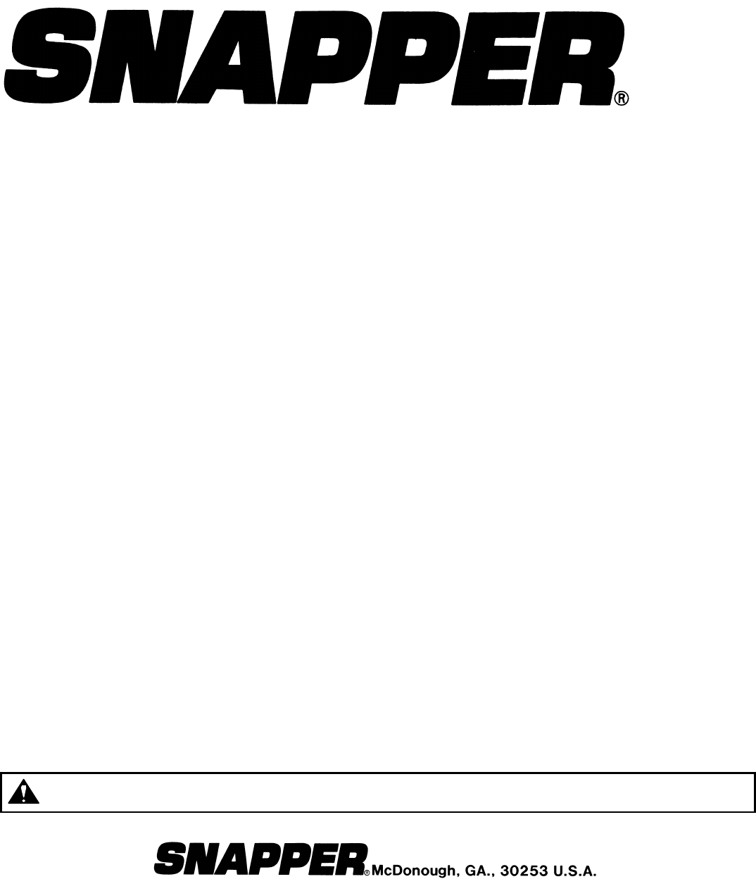 manual, and on the machine, engine and attachments. If you have any questions about your Snapper product,