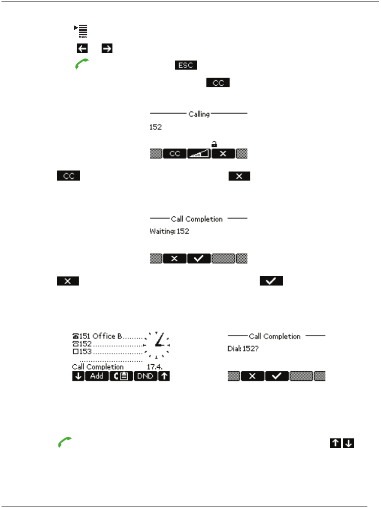 • Press > 2 Call Features > 2 Outgoing Calls > 3 Call Completion.
