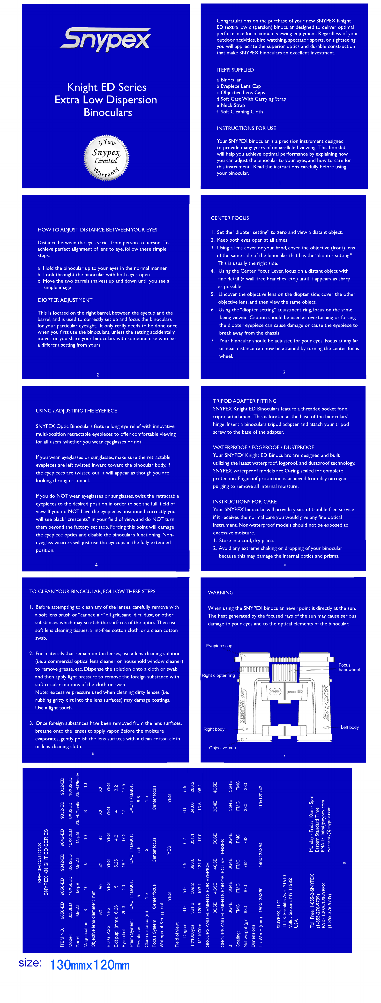 Your SNYPEX binocular will provide years of trouble-free service