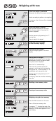 _ Components weighing Commissioning is only possible in weighing mode and on one set of scales Tare the container if necessary K Place the items to be weighed on the scale. K Transfer the weight value to the component weighing memory. The K-mode is indicated by an arrow. Place the next items to be weighed on the scale. Transfer the weight value to the commission memory, etc. K K Place the next items to be weighed on the scale. Transfer the weight value to the commission memory, etc.