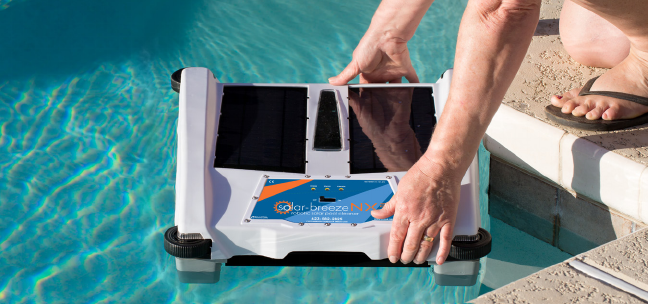 After placing the Solar-Breeze NX2 robot in the pool, slide the