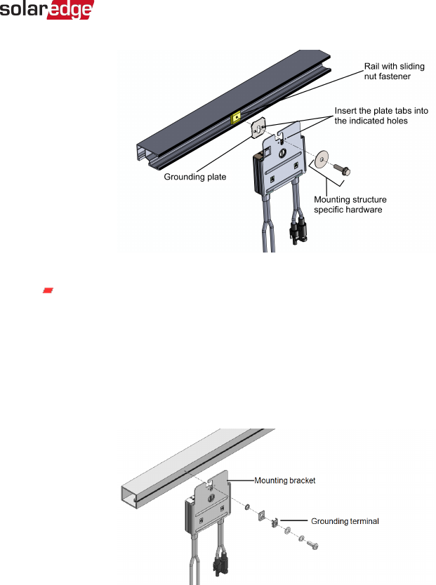 Figure 5: Power optimizer installation and grounding using a grounding plate