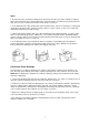 SPECIFICATIONS Model CFM-25E Power Supply 115V, 60Hz Capacity 12 liters/day (25 pints/day) 20 liters/day (40 pints/day) Power Consumption 220W 330W Water Tank Capacity Weight 6 liters (automatic shutdown at ~ 5.5 liters) [12.5pints (automatic shutdown at ~ 11.5 pints)] 27.5 lbs Dimensions (WxDxH) • • • CFM-40E 30.8 lbs 14.5” x 9.25” x 21 The dehumidification capacity is rated at a room temperature of 86°F with a relative humidity of 80%.