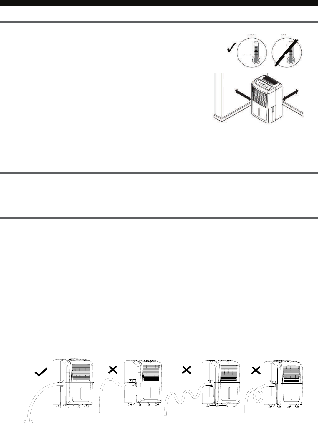 • Place the dehumidifier in an area where the temperature will not fall below 41°F.