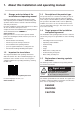1. About this installation and operating manual There are three different classifications of hazards. INFORMATION This symbol indicates that all operator components that have been taken out of service must not be disposed of with household waste, as they contain hazardous substances. The components must be disposed of correctly at an authorised recycling centre. The local and national regulations must be observed. DANGER Describes an immediate danger that leads to serious injury or death.