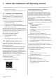 1. About this installation and operating manual There are three different classifications of hazards. INFORMATION This symbol indicates that all operator components that have been taken out of service must not be disposed of with household waste, as they contain hazardous substances. The components must be disposed of correctly at an authorised recycling centre. The local and national regulations must be observed. DANGER Describes an immediate danger that leads to serious injury or death.