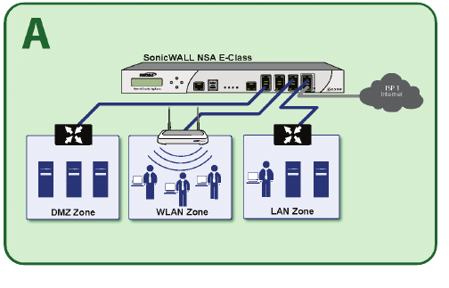 - In this scenario, the original gateway is maintained. The SonicWALL NSA E6500 is integrated seamlessly into the existing network...