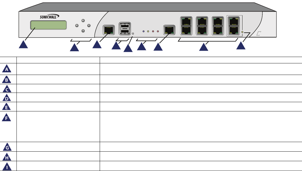 Console Port Used to access the SonicOS Command Line Interface (CLI) via the DB9 -> RJ45 cable.
