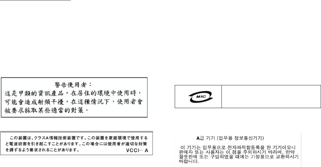 NOTE: This equipment was tested and found to comply with the limits for a Class A