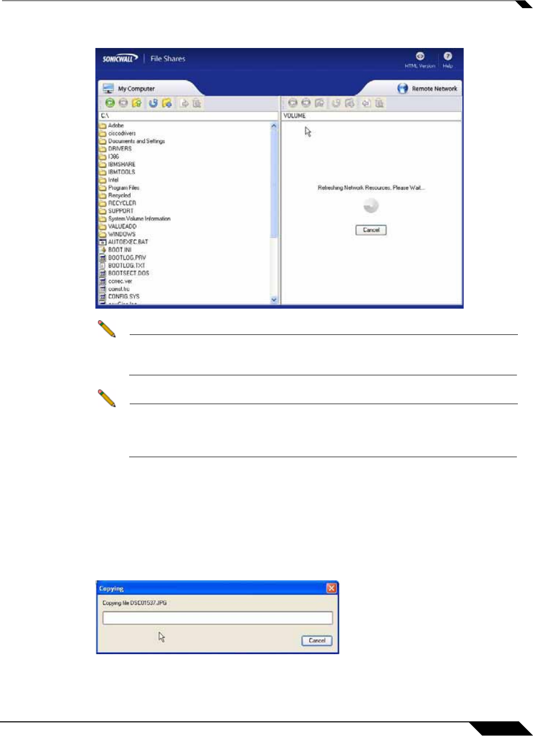 Note The File Shares Applet window will not automatically refresh when its contents have