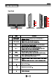 OK ENTER( ▲/ ▼/◄ / ► ) Allows you to navigate the on-screen menus and adjust the system settings to your preference. COLOR BUTTONS Select 4 Preferred TELETEXT pages. INDEX button Request index page when index link is valid. HOLD Freeze the current page. MIX TV and TTX pictures are mixed together in transparent Background. Press to search the NICAM mode. REVEAL Reveal or hide the hidden words. Prompt the user to enter a subcode for the Text page. SIZE Change the TELETEXT size.