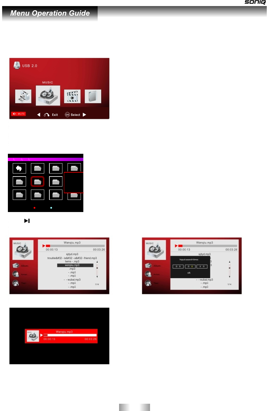 Press ◄/► button to select MUSIC in the main menu, then press OK button to enter.