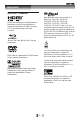 Glossary HDMI High-Definition Multimedia Interface (HDMI) is a high-speed digital interface that can transmit uncompressed high definition video and digital multichannel audio. It delivers high quality picture and sound quality, completely free from noise. HDMI is fully backward-compatible with DVI. As required by the HDMI standard, connecting to HDMI or DVI products without HDCP (High-bandwidth Digital Content Protection) will result in no Video or Audio output. PBC Playback Control.