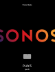 4 Product Guide Controls and Buttons PLAY:5 Front Touch Controls Note: The Sonos PLAY:5’s front grille is not removable. Tampering with the grille may result in damage to your PLAY:5. On/Off Your Sonos system is designed to be always on; the system uses minimal electricity whenever it is not playing music. • To quickly stop streaming audio in all rooms, select Pause All from the Rooms menu on a Sonos controller. • To stop streaming audio in one room, you can touch the Play/ Pause button on the PLAY:5.