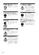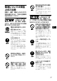 安全のために ソニー製品は安全に充分配慮して設計されています。しかし、電気 製品は、まちがった使いかたをすると、火災や感電などにより死亡 や大けがなど人身事故につながることがあり、危険です。 事故を防ぐために次のことを必ずお守りください。 安全のための注意事項を守る 4 ∼ 8 ページの注意事項をよくお読みください。 9 ページの「使用上のご注意(性能を保持するために)」もあわせて お読みください。 定期点検をする 長期間安全に使用していただくために、定期点検を実施することを おすすめします(有料)。点検の内容や費用については、ソニーの サービス窓口にご相談ください。 警告表示の意味 取扱説明書および製品で は、次のような表示をして います。表示の内容をよく 理解してから本文をお読み ください。 この表示の注意事項を守ら ないと、火災や感電などに より死亡や大けがなど人身 事故につながることがあり ます。 故障したら使わない すぐに、お買い上げ店またはソニーのサービス窓口にご連絡くださ い。 万一、異常が起きたら この表示の注意事項を守ら ないと、感電やその他の事 故によりけがをしたり周辺 の物