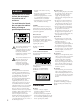 WARNING To prevent fire or shock hazard, do not expose the unit to rain or moisture. To avoid electrical shock, do not open the cabinet. Refer servicing to qualified personnel only. – Reorient or relocate the receiving antenna. – Increase the separation between the equipment and receiver. – Connect the equipment into an outlet on a circuit different from that to which the receiver is connected. – Consult the dealer or an experienced radio/TV technician for help.