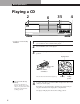Basic Operations Playing a CD 2 6 POWER 35 4 OPEN CONTNUE SHUFFLE PROGRAM REPEAT DISC 1 • See pages 4 – 5 for the hookup information. 1 2 3 DISC 2 DISC 3 DISC SKIP DISC 4 DISC 5 Turn on the amplifier and select the CD player position so that you can listen to the sound from this player. Press POWER to turn on the player. Press OPEN, and place a disc on the disc tray at the loading position.