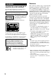 Hooking up the optional components (continued) To Do This Listen to the connected digital component Press FUNCTION repeatedly until “OPTICAL IN” appears in the display. Record from a Press FUNCTION repeatedly connected digital until “OPTICAL IN” appears component to an MD in the display. Load a recordable MD, and then start playing the digital component. Press REC/REC IT to place the unit into recording standby, and then press u at the point where you want to start recording. To stop recording, press x.