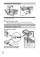 Inserting the battery pack Eject lever 1 Open the cover. the battery pack. 2 Insert • While pressing the battery eject lever, insert the battery pack as illustrated. Make sure that the battery eject lever locks after insertion.