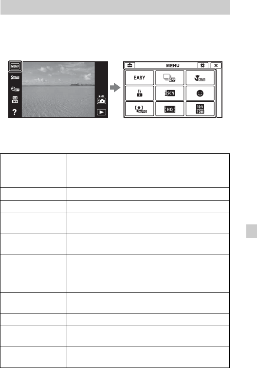 vha. berøring af MENU på skærmen. Dette kamera er udstyret med en