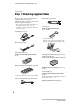 E:\SONY\2659814111\01GB06COM_E.fm Installing the software and “First Step Guide” on a computer (Continued) 6 Click [Next]. 9 Click [Install] on the [Ready to Install the Program] screen. The installation of Picture Package starts. 7 Read [License Agreement], check [I accept the terms of the license agreement] if you agree, then click [Next]. 10Click [Next] to install the “First Step Guide.” Depending on the computer, this screen may not be displayed. In such a case, skip to step 11.