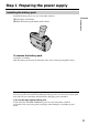 Step 1 Preparing the power supply Playing time DCR-TRV8 Battery pack NP-FM50 (supplied) NP-FM70 NP-FM90 Playing time on LCD screen 140 (125) 295 (265) 450 (400) Playing time with LCD closed 180 (160) 370 (330) 560 (505) Playing time on LCD screen 135 (120) 275 (250) 425 (380) Playing time with LCD closed 180 (160) 370 (330) 560 (505) DCR-TRV10 Battery pack NP-FM50 (supplied) NP-FM70 NP-FM90 Approximate number of minutes when you use a fully charged battery Numbers in parentheses “( )” indicate the tim