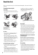 Table of Contents Read this first ...........................................................................................2 Identifying Parts and Controls ..................................................................4 Body ..................................................................................................... 4 Wireless Remote Commander ........................................................... 12 Screen Indicators .....................................................................