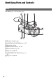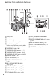 Identifying Parts and Controls (Continued) A VIDEO OUT jack/AUDIO OUT jack (p. 65, 81) B HDMI OUT jack (p. 65) L START/STOP button (p. 28) C Multi/Micro USB jack (p. 91) M POWER/CHG lamp D DC IN jack (p. 19) E Cable clamper/loop clamper F Handle zoom lever (p. 32) G Handle record button (p. 28) H INPUT1 jack (p. 42) I INPUT2 jack (p. 42) J Grip belt K Tripod receptacles (1/4 inch, 3/8 inch) Supports 1/4-20UNC and 3/8-16UNC screws. For mounting on a tripod (sold separately, screw length 5.