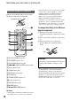 Identifying parts and controls (Continued) Wireless Remote Commander Remove the insulation sheet before using the Wireless Remote Commander. Insulation sheet • Point the remote sensor away from strong light sources such as direct sunlight or overhead lighting. Otherwise, the Wireless Remote Commander may not function properly. • When you are operating with the Wireless Remote Commander supplied with your camcorder, your video device may also operate.